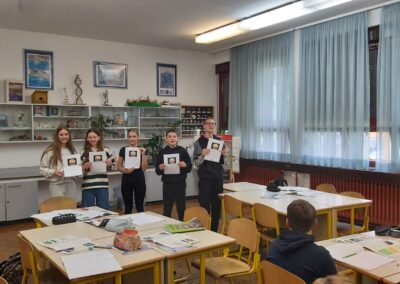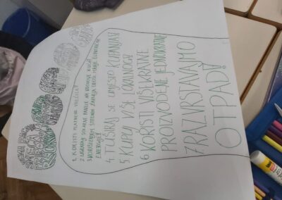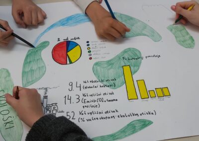 Povodom Dana planeta Zemlje, u suradnji s prof. Bernardom Musović, učenici 6.b razreda na nastavi Prirode upoznali su se s pojmovima ekološkog i ugljičnog otiska. Učenicima su predstavljeni pojmovi ekološkog i ugljičnog otiska te kakav utjecaj svatko od nas ima na njihovo stvaranje i povećanje. Nakon izlaganja, učenici su podijeljeni u tri grupe s različitim zadacima. Prva grupa imala je za zadatak pomoću online kalkulatora izračunati ekološki otisak grupe te dobivene rezultate prikazati izradom plakata. Druga grupa rješavala je zadatak Otkud dolazi moj hamburger? putem kojega su učenici određivali namirnice potrebne za hamburger, određivali sastojke potrebne za proizvodnju svake potrebne namirnice te potrebnu energiju koja se ulaže za proizvodnju namirnica. Treća grupa imala je za zadatak napisati svoje preporuke za smanjenje ekološkog otiska. Po završetku zadatka, svaka grupa predstavila je rezultate rada.